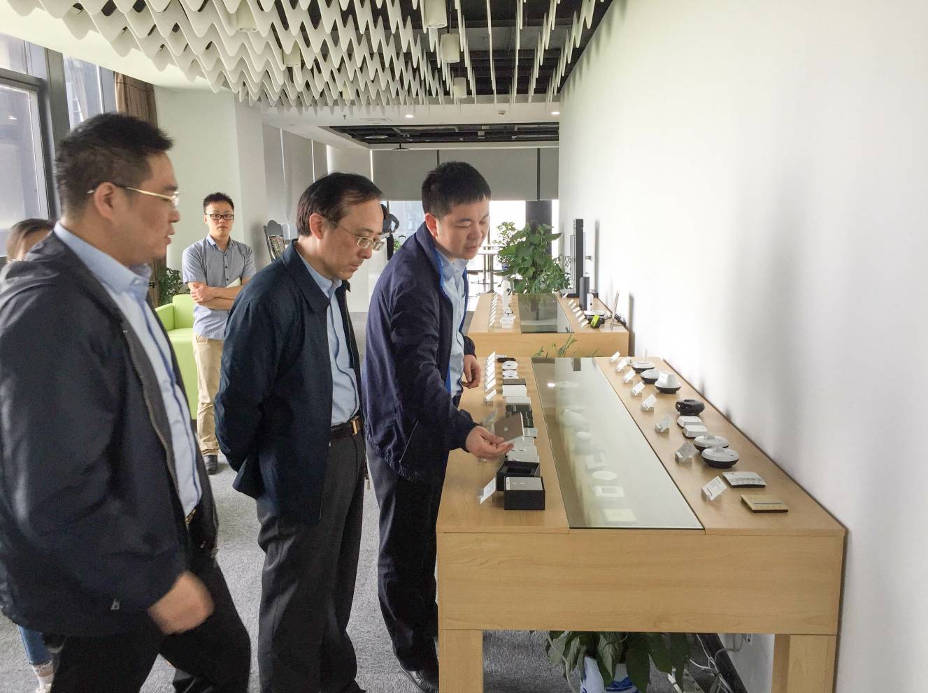 朱峰总向龚怀进副主任详细介绍物联网智能家居行业首款能够量产的智能金属开关——WULIAN智能金属开关。