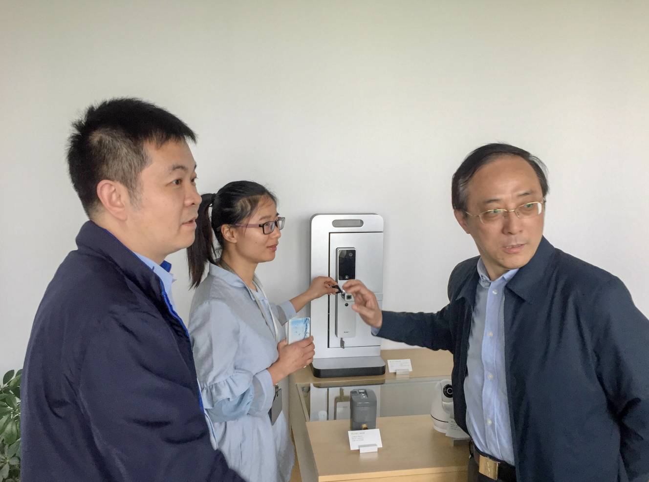 龚怀进副主任体验网络智能锁,并询问了这款门锁的安全性。在得知这款门锁具备门铃、摄像头等功能,支持密码、指纹等多种方式,并且采用超B级锁芯,安全性能达到金融级别后,龚怀进副主任点头给予肯定。